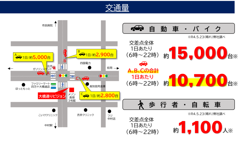 交通量: 自動車・バイク: 約10,700台/日(6時~22時)